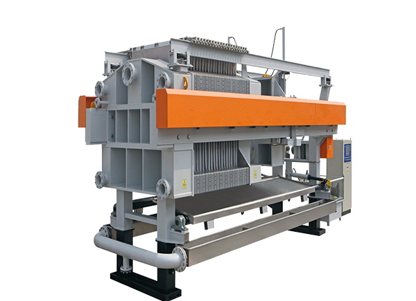 板與框相間排列而成,在濾板的兩側(cè)覆有濾布,用壓緊裝置把板與框壓緊,即在板與框之間構(gòu)成壓濾室。在板與框的上端中間相同部位開有小孔,壓緊后成為一條通道,加壓到0.2~0.4MPa的污泥,由該通道進入壓濾室,濾板的表面刻有溝槽,下端鉆有供濾液排出的孔道,濾液在壓力下,通過濾布、沿溝槽與孔道排出濾機,使污泥脫水。國內(nèi)外已開發(fā)出自動化的板框壓濾機。板框壓濾機比真空過濾機能承受較高的污泥比阻,這樣就可降低調(diào)理劑的消耗量,可使用較便宜的藥劑(如FeSO4·7H2O)。當污泥比阻為5×1011~8×1012m/kg時,可以不經(jīng)過預(yù)先調(diào)理而直接進行過濾。板框壓濾機其泥餅產(chǎn)率和泥餅含水率,應(yīng)根據(jù)試驗資料或類似運行經(jīng)驗確定。泥餅含水率一般可為75%~80%。